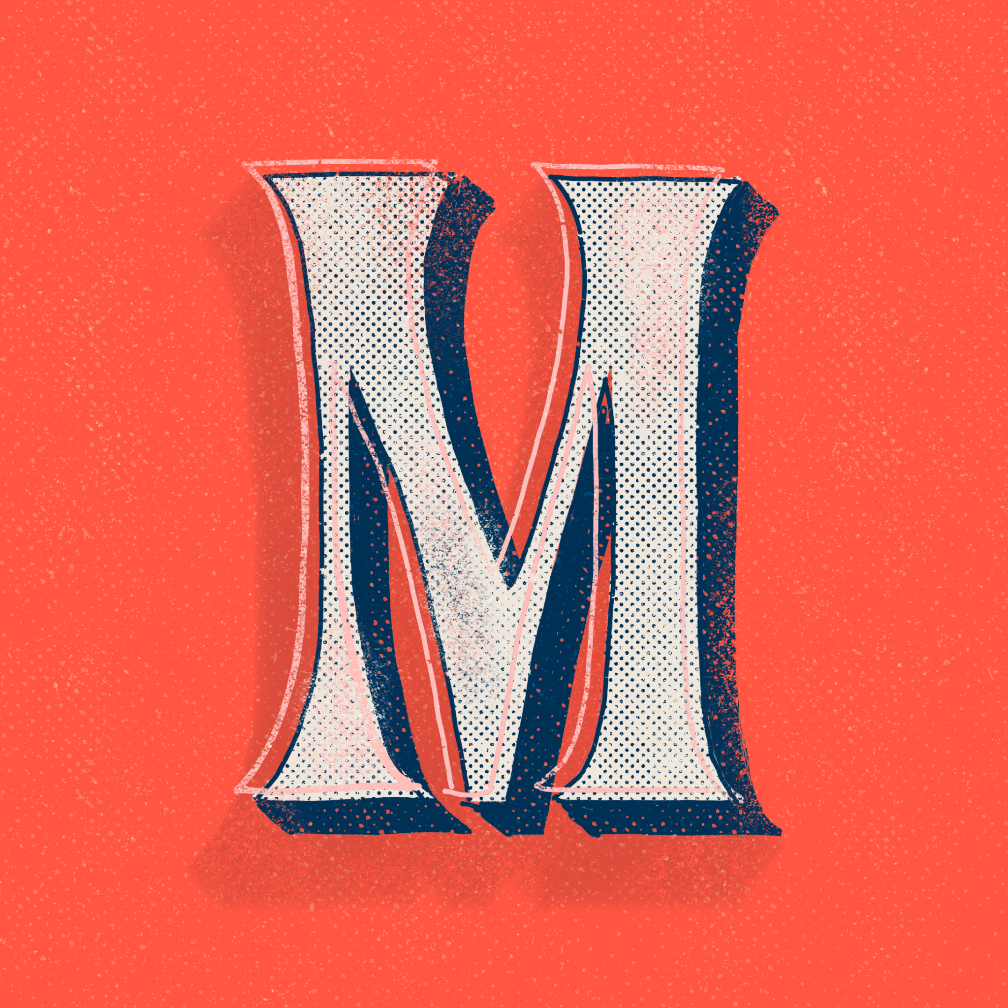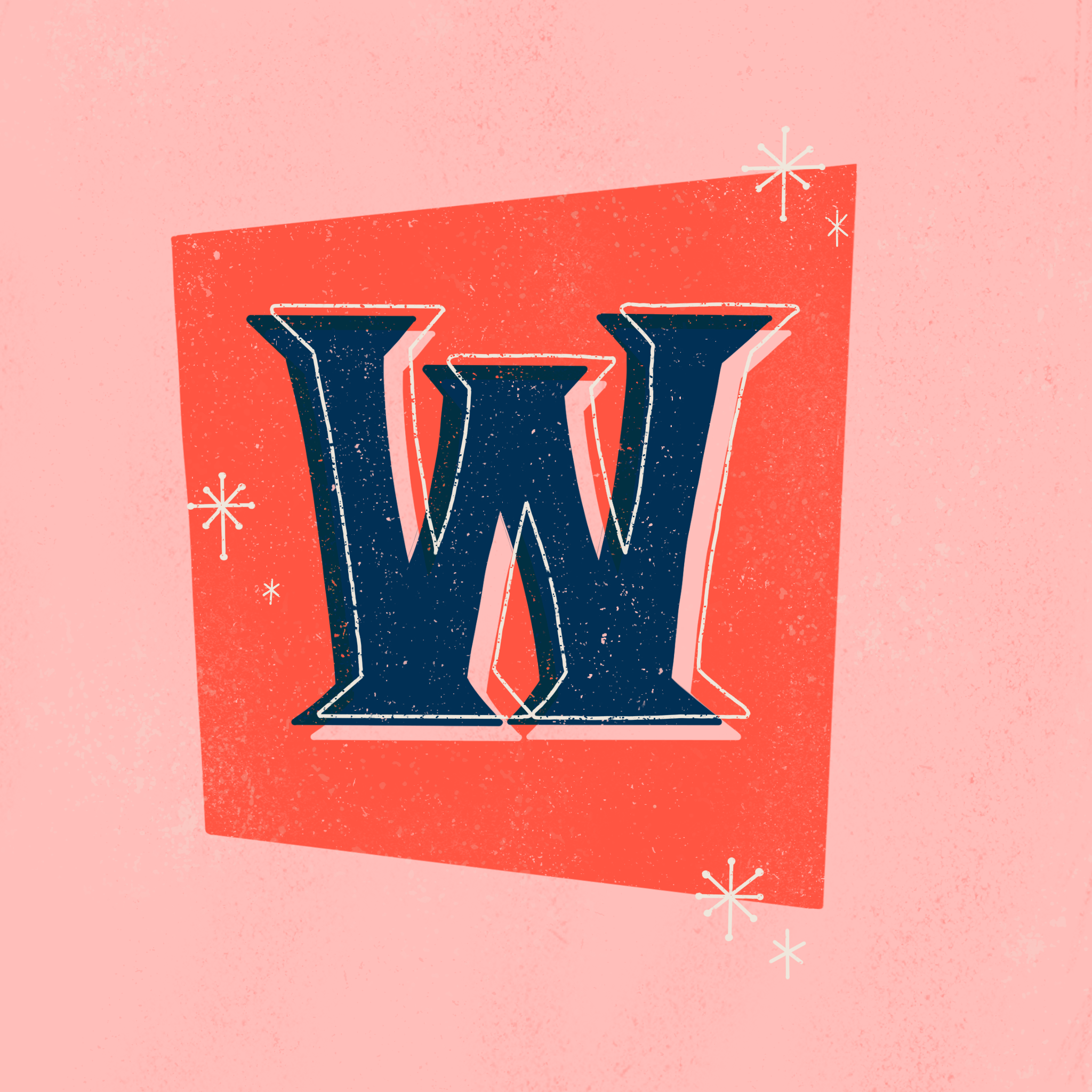 36 Days of Type is an annual project that invites designers, illustrators and artists alike to share their interpretation of the letters and numbers of the Latin alphabet. After years of eyeing many beautiful submissions, I decided to tackle the 36 day challenge. My goal was to create an alphabet that explores grungy textures, layering, a wide variety of type styles (with a hint of retro), all within a strict four-color palette. During the challenge, a few of my letters were featured on the 36 Days Instagram page.